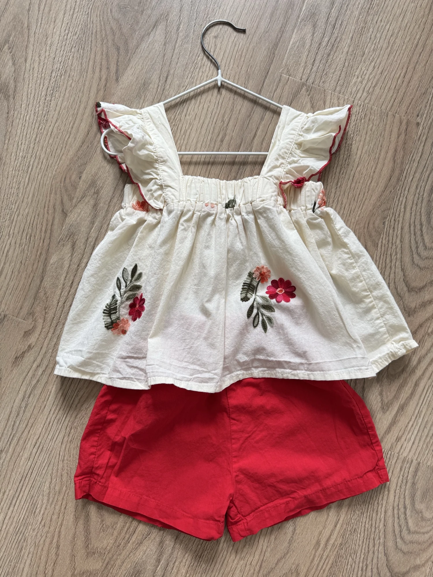 Mantenha sua pequena fresquinha e encantadora neste verão com o Conjunto Encanto Floral. Pensado para bebês de 0 a 3 anos, esse lindo conjunto de duas peças traz estampa delicada de flores, mangas curtas com detalhe leve e tecido de algodão macio para máximo conforto nos dias quentes.